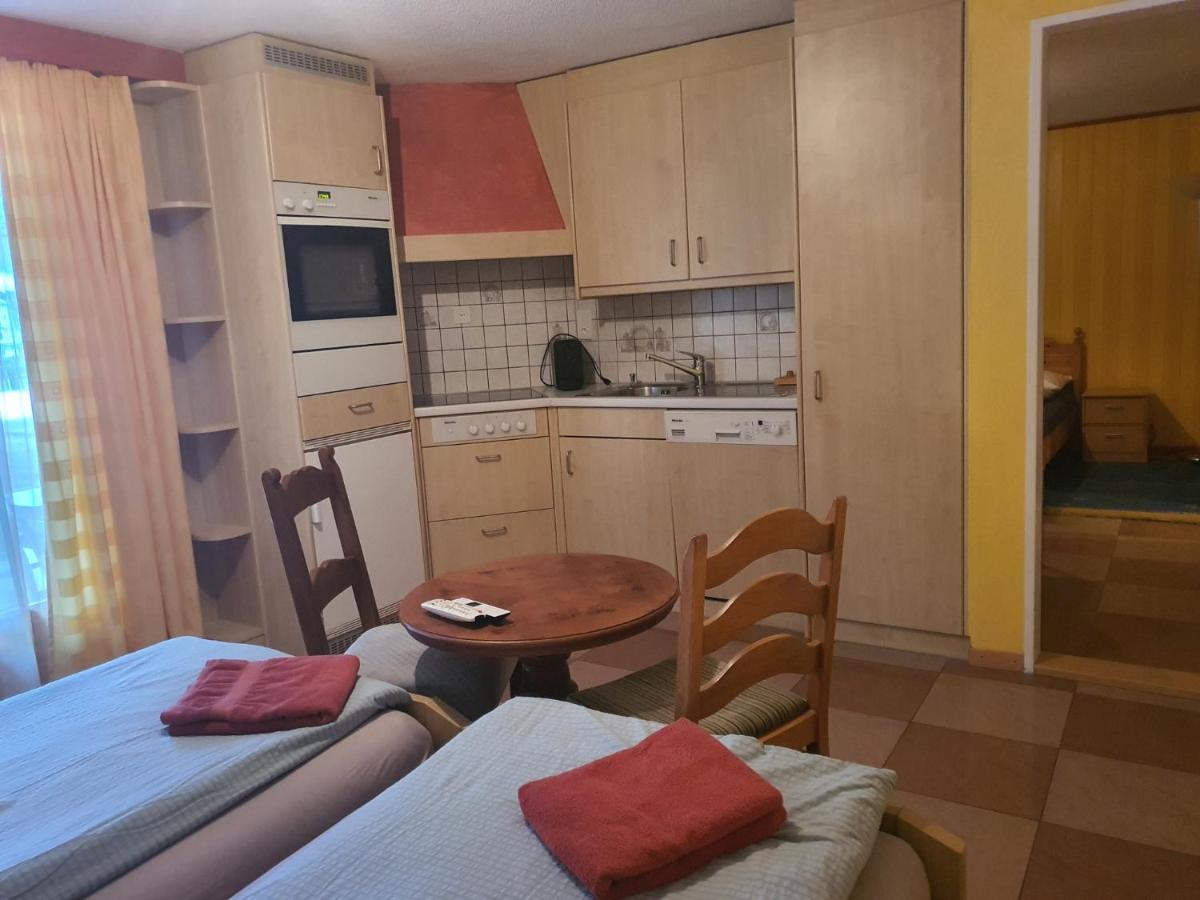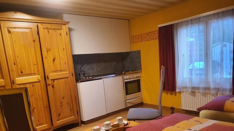 Gemütliches und geschmackvoll eingerichtetes 1er Zimmer genannt WEISSHORN Zimmernummer 402 – eingerichtet als Studio südwestlich gelegen mit Blick auf die Berg- Gletscher und Alpenlandschaft von Randa + Umgebung..