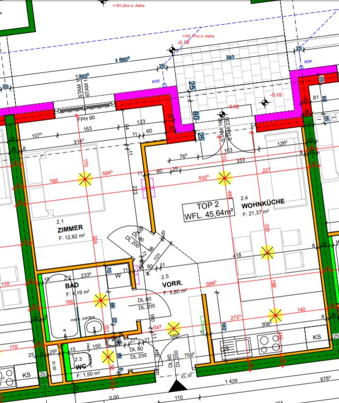 Bei Top 2 handelt es sich um eine Wohnung mit einer Wohnküche und einem Schlafzimmer. Es wurde eine hochwertige DAN-Küche eingebaut. Weiters gibt es eine dazugehörige Terrasse mit Grünfläche zum entspannen, welche direkt vom Wohnzimmer aus zugänglich ist.