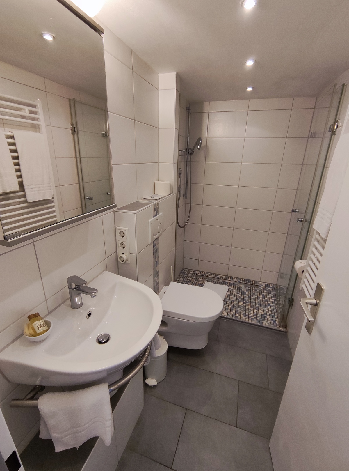 Alle Bäder haben eine geräumige Dusche.